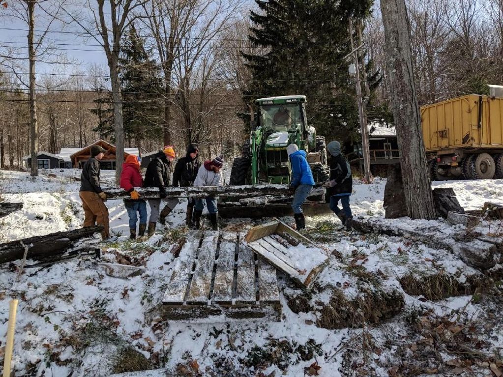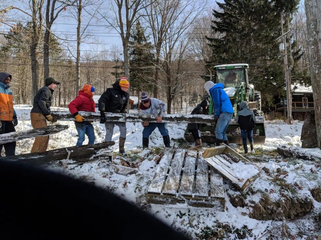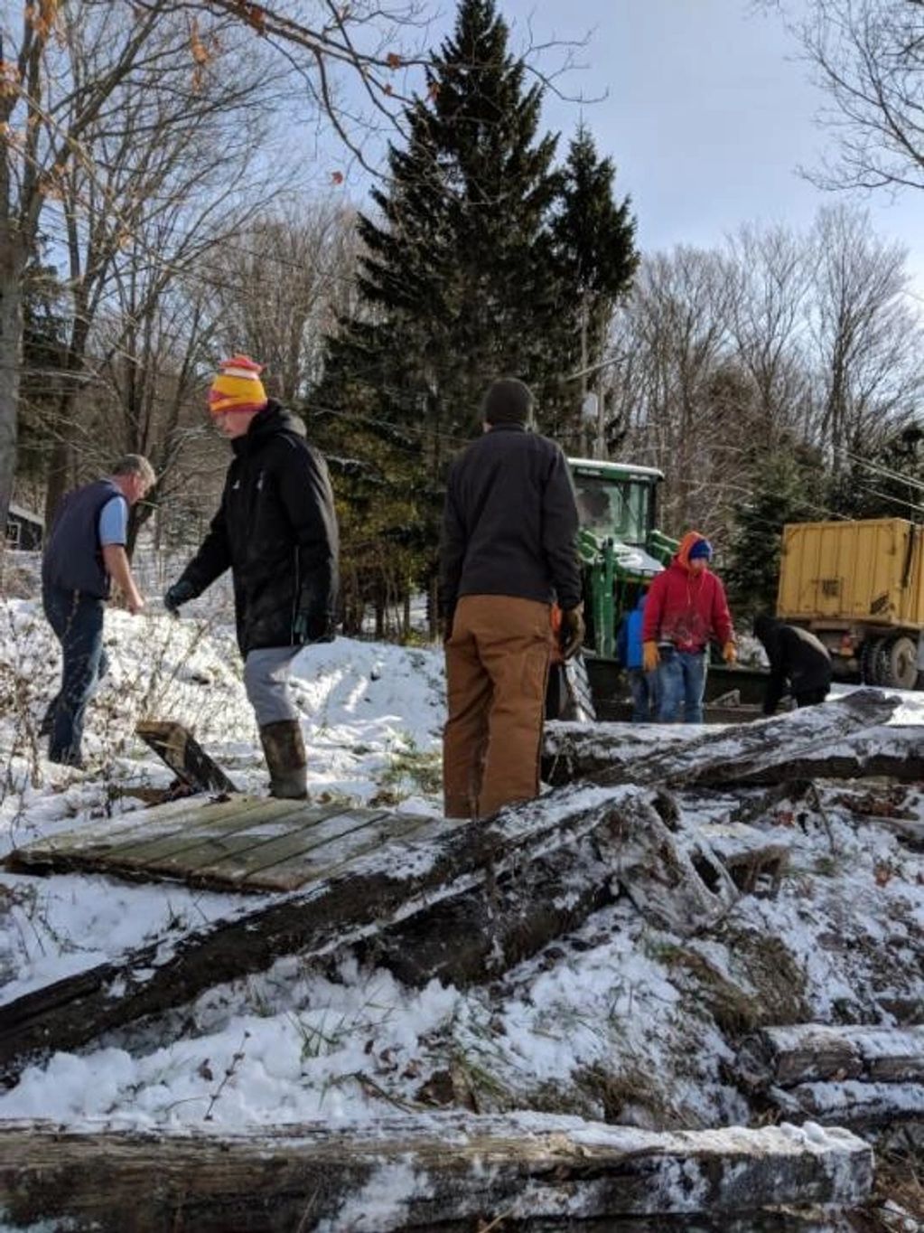 Hard heavy and cold work being done by the DeRuyter School Basketball Team members coordinated by Frankie Glisson.