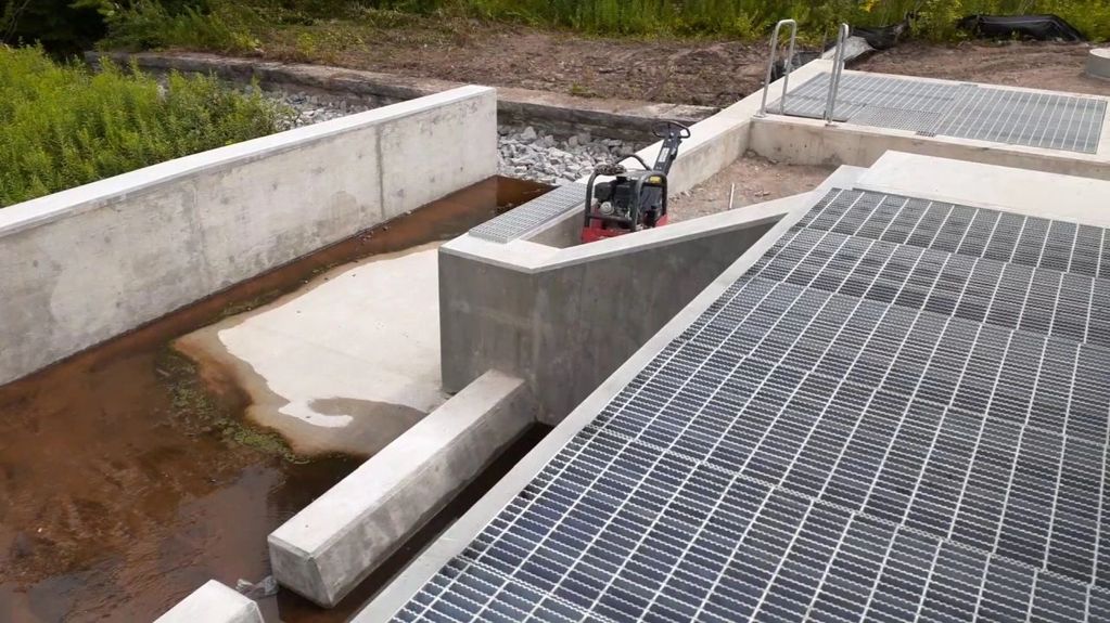 Close up of the Weir Box Chamber on the right with the grating installed.