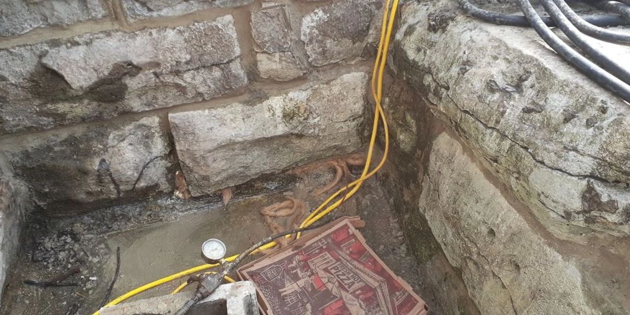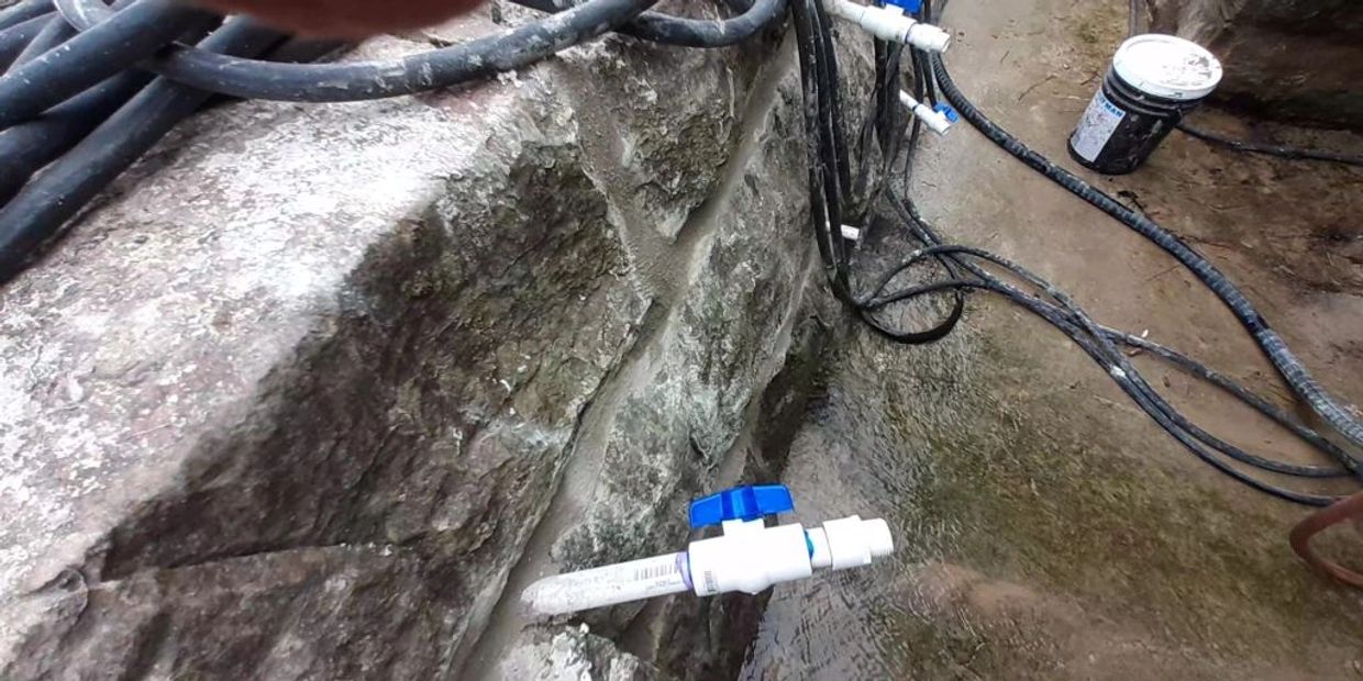 Close up of a grout pipe installed and the "pointing" of the seams.